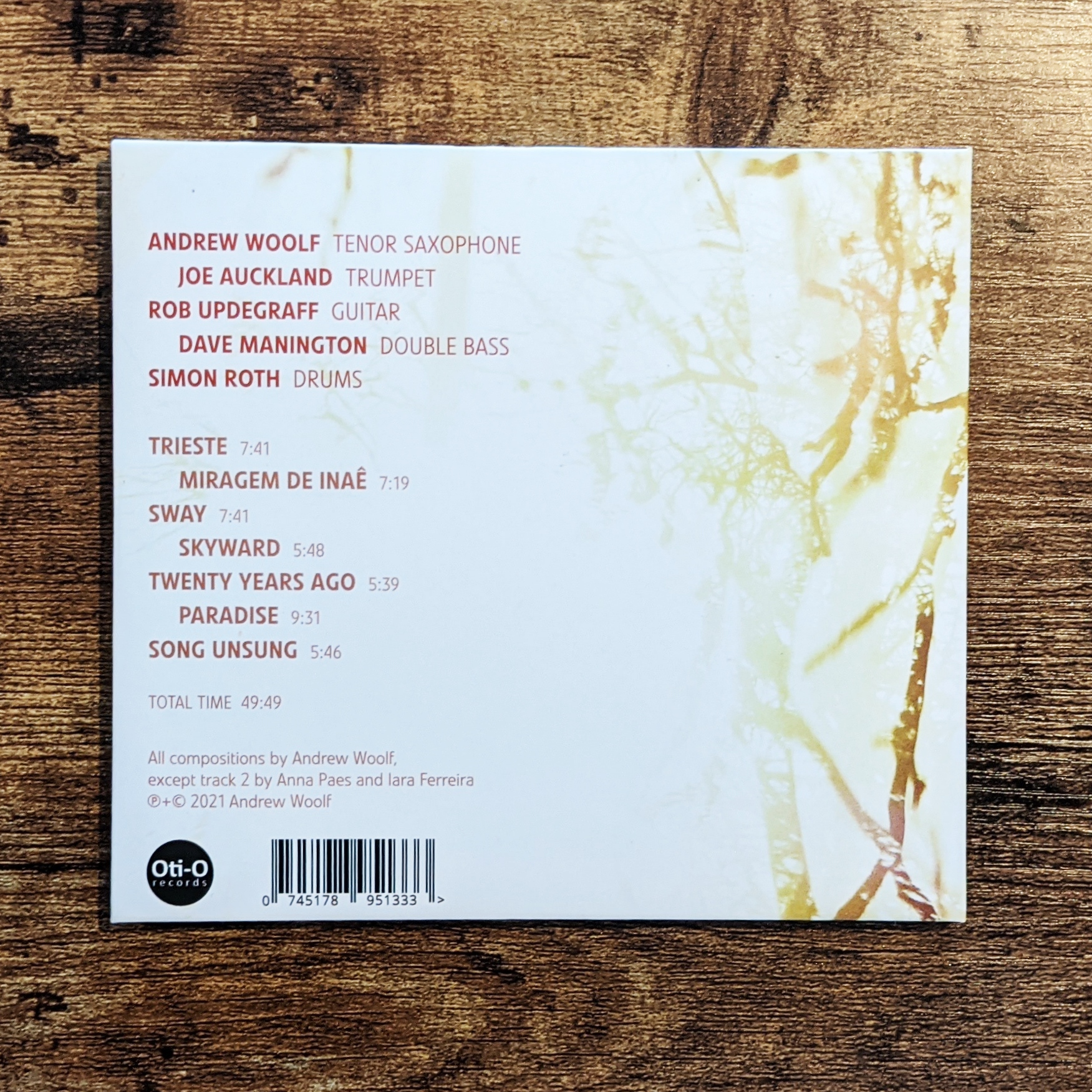 The album features my own compositions (plus one arrangement of a contemporary Brazilian song). I play tenor sax throughout, alongside the wonderful Joe Auckland (trumpet), Rob Updegraff (guitar), Dave Manington (double bass) and Simon Roth (drums).