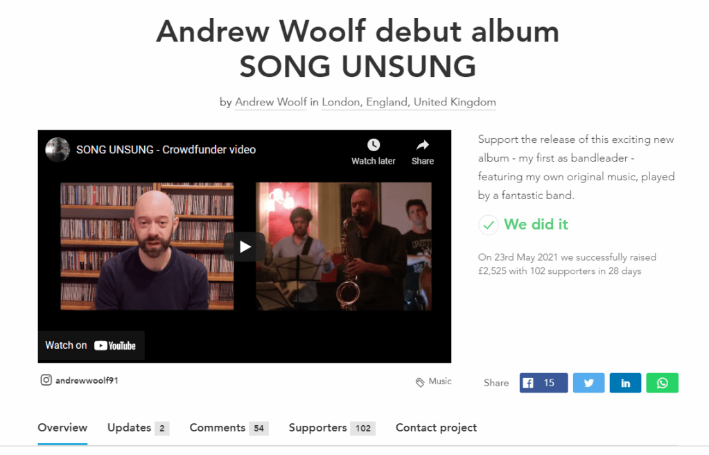 Aware that many musicians are continuing to struggle as a result of the pandemic, and that my situation is pretty fortunate, I also decided to donate £200 from the proceeds to Help Musicians, a charity which supports musicians who are in difficulty.